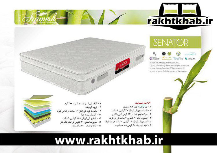 تشک رویال آرامش مدل سناتور / طبی فنری / فنر متصل-Bonell Spring / ارتفاع تشک 33 سانتی متر