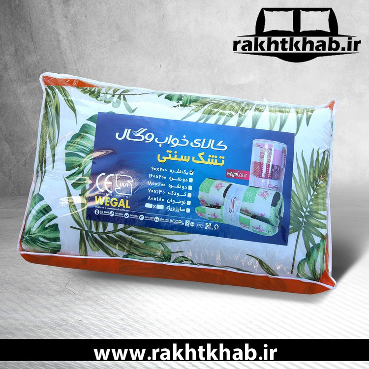 تشک سنتی وگال تهیه شده از الیاف ویرجین هالو و رویه ای ازجنس تترون پلی استر پنبه ای طرح دار است. این محصول سبک، نرم و گرم، جایگزین مناسبی برای تشک های سنتی پنبه ای و قدیمی سنگین شماست.