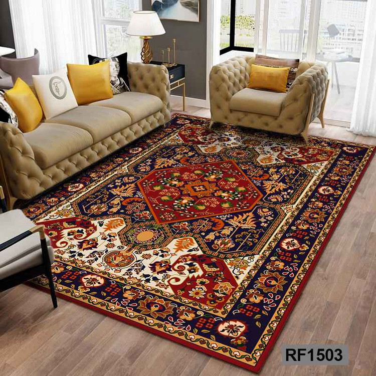 روفرشی کشدار (کاور فرش) - جنس پارچه مخمل ابریشمی (مخمل شانل)- بافت پارچه با تراکم و گراماژ بالا - چاپ سابلیمیشن - رنگ ثابت و بدون آبرفت - کش دوزی در چهار گوشه محصول جهت فیکس شدن روفرشی روی فرش