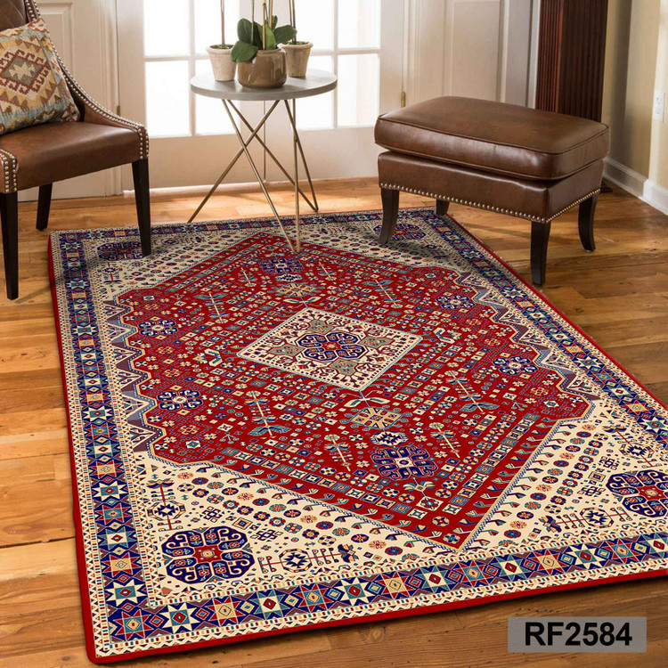 روفرشی کشدار (کاور فرش) - جنس پارچه مخمل ابریشمی (مخمل شانل)- بافت پارچه با تراکم و گراماژ بالا - چاپ سابلیمیشن - رنگ ثابت و بدون آبرفت - کش دوزی در چهار گوشه محصول جهت فیکس شدن روفرشی روی فرش